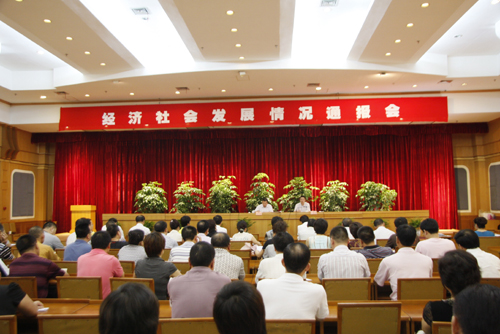 陈建明在通报情况时指出,上半年,我市经济保持平稳较快发展,实现工业总产值423.38亿元,其中规模工业总产值317.68亿元,分别增长32.7%和增长36.1%;财政总收入31.1亿元,其中地方财政收入16.8亿元,分别增长13.4%和18%;全社会固定资产投资42.13亿元,增长1.1%;全社会消费品零售总额89.31亿元,增长22.6%;城镇居民人均可支配收入16060元,农村居民人均现金收入7321元,分别增长12.2%和9.9%。下半年,政府将重点在加快推进经济转型升级、推进现代化大城市建设、加快重点工程建设、加快新农村建设步伐、推进生态文明建设、强化要素保障、协调发展社会事业、维护社会和谐稳定和进一步加强政府自身建设等9方面抓好工作,努力完成全年各项目标任务,确保瑞安经济平稳较快发展,确保社会和谐稳定。