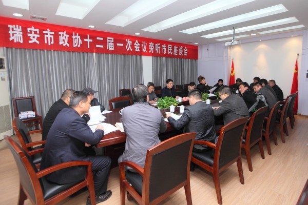 1月5日下午,市政协十二届一次会议举行旁听市民座谈会,市政协副主席黄长安参加会议。15位受邀旁听大会的市民代表围绕城市建设、社会管理、民生改善等各方面话题坦诚直言,为瑞安的发展提出意见和建议。