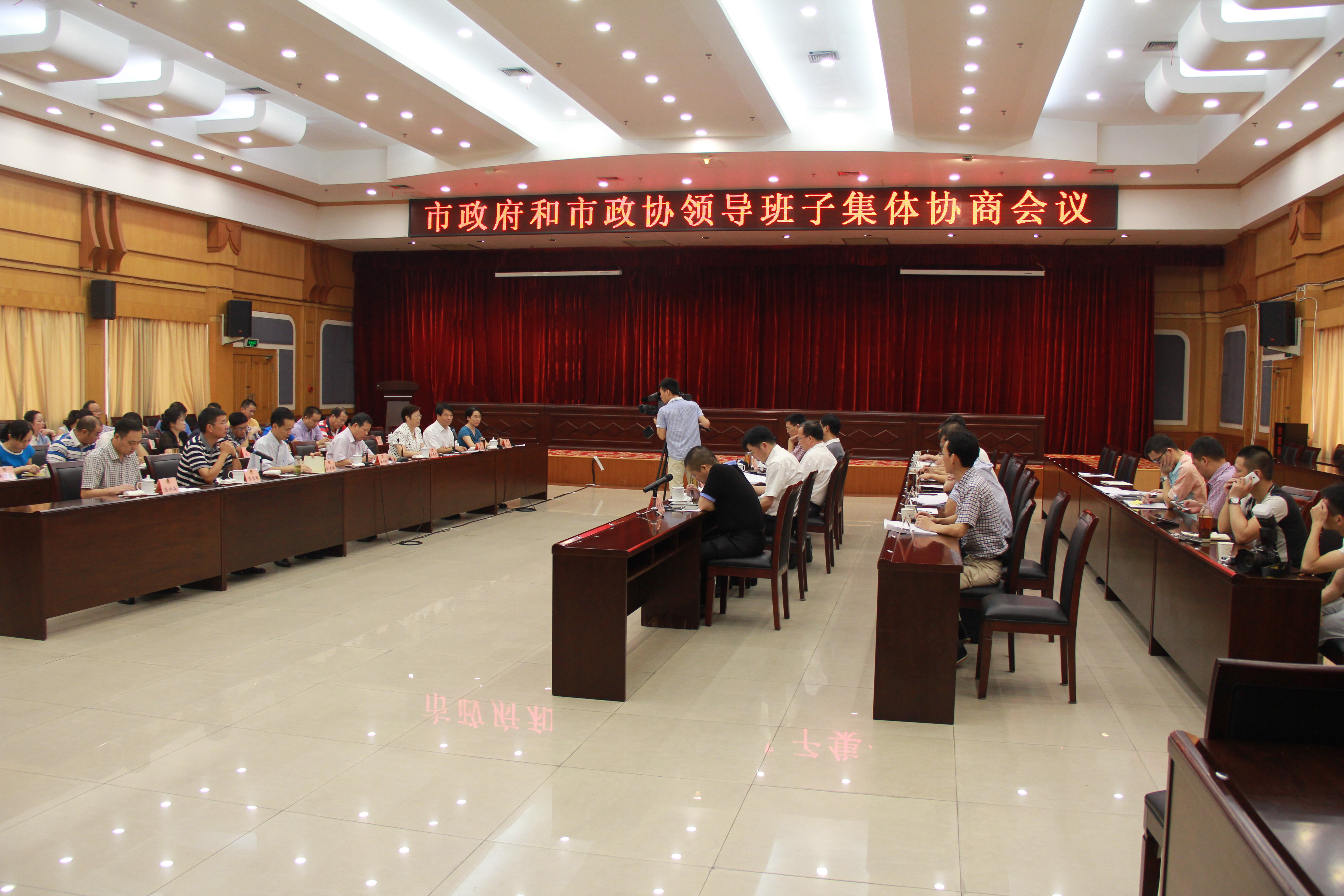 上午8时30分,市政大院多功能厅里,市政府、政协领导班子和相关办公室、市直机关负责人等30余人参加会议。和平时会场不同的是,政府和政协负责人相对而坐,面对面发言。