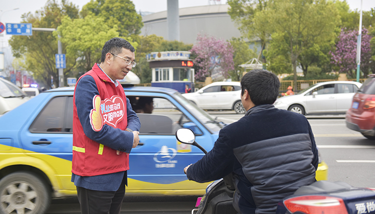 市政协副主席陈良明带领志愿者开展“文明过马路”志愿服务劝导活动
