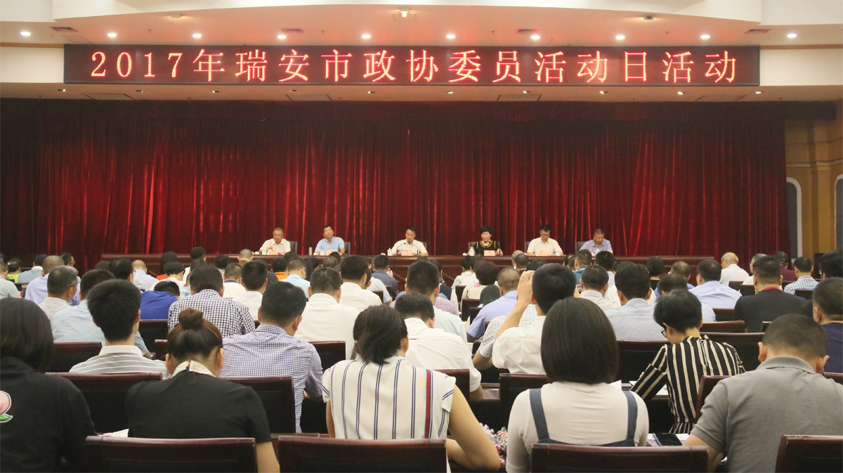 9月1日上午,市政协委员活动日活动在市政大院多功能厅举行。市委副书记、市长麻胜聪参加活动并作全市经济社会发展形势报告,寄语政协组织和广大政协委员充分发挥“智囊团”“人才库”等优势,合心合力为“加快融合发展、打造至美瑞安”建新功立新业。