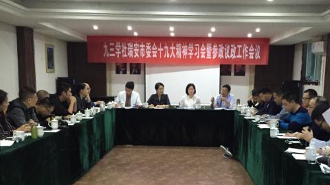 近日,九三学社瑞安市委会召开骨干社员思想政治学习会,认真学习贯彻党的十九大精神。