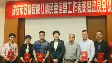 我市反映社情民意信息工作扣中心、重质量、有特色,连续6年排名温州市各县(市、区)第一。2017年共收到社情民意信息426条,编报83期,其中两篇被全国政协采用, 15篇信息被省政协采用。会议表彰了包括民盟瑞安市委员会等6家工作先进单位和万明鹏等12位优秀信息员。会上,参加单位和特邀信息员就信息工作的发展畅所欲言献策。
