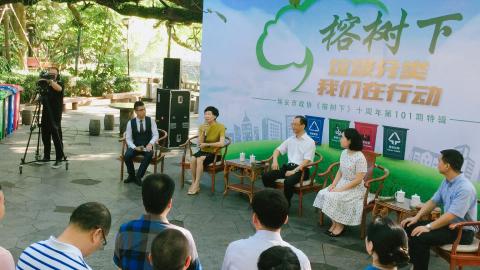 8月16日,市政协《榕树下》十周年第101期特辑——“垃圾分类 我们在行动”在市湖滨公园百年大榕树下进行录制,市委书记陈胜峰、市政协主席管秀云参加活动。