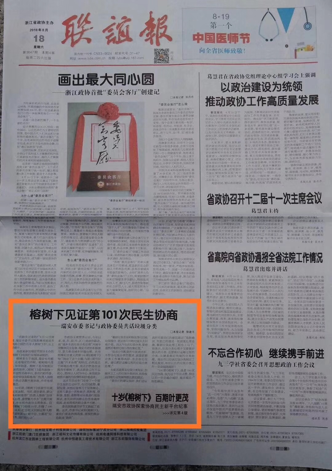 省政协《联谊报》整版刊登——瑞安政协《榕树下》第101次民生协商