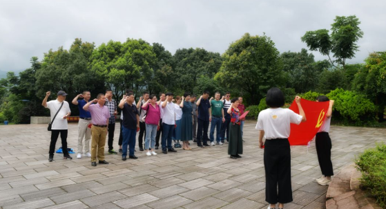 在中国工农红军挺进师纪念碑前,全体党员郑重地举起右手,重温入党誓词。随后,在讲解员的带领下,党员们还参观了中国工农红军挺进师纪念馆,聆听了挺进师辉煌的革命斗争历史,重温那段烽火连天的革命岁月。