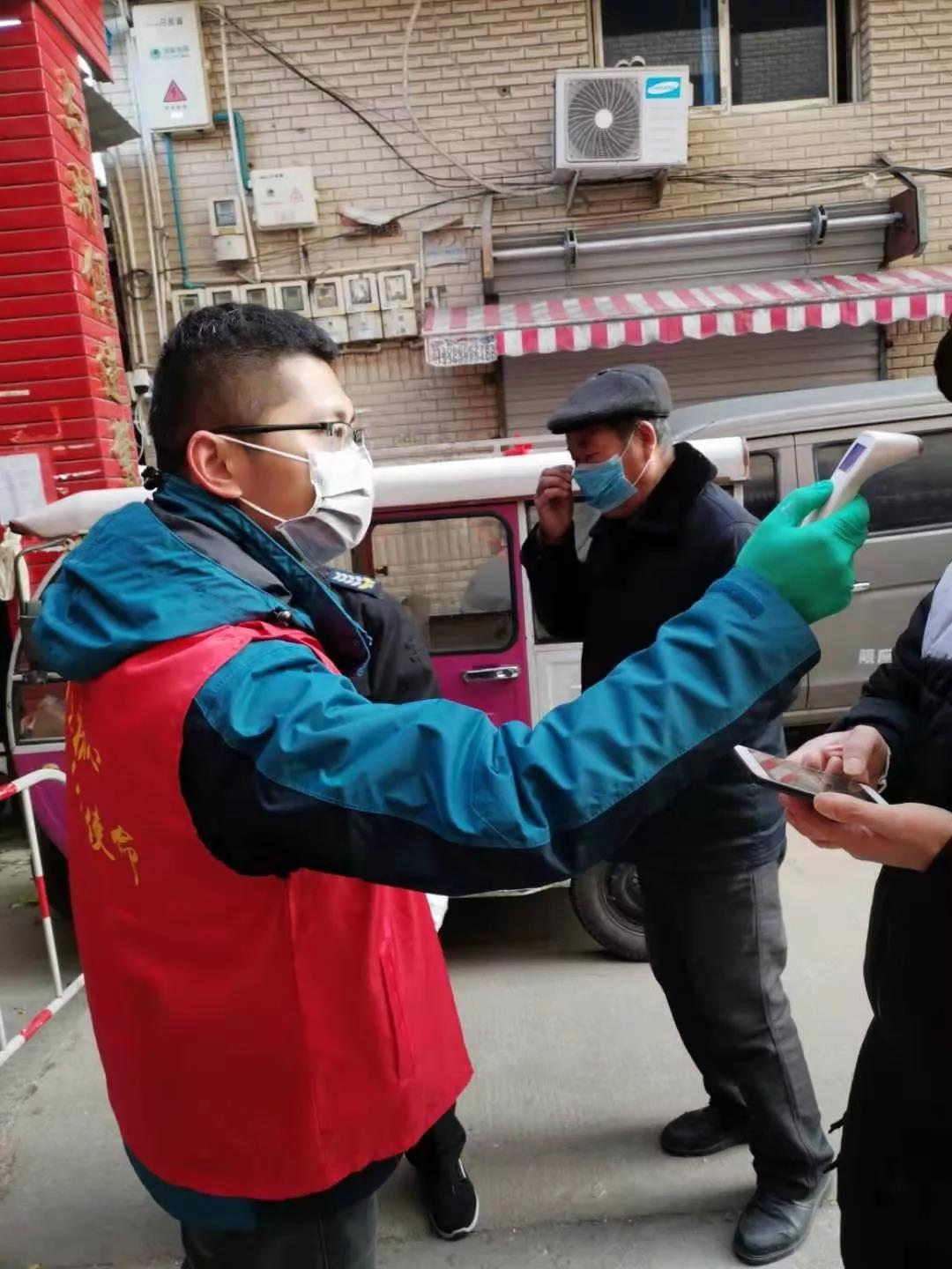 瑞安市政协委员、九三学社社员、瑞安市农产品质监站长杨剑,为全身心投入抗疫战斗,割舍家人,忍痛扔下2个6岁双胞胎,深入基层前线,抗击疫情。根据工作安排,正月初四到正月初八,他率队到驼山农贸市场开展疫情防控工作。由于该市场地处塘下与瓯海交界,外来人员较多,属于疫情难防难控的重点场所。到达市场后,立即开展多种形式的疫情防控工作。发现农贸市场原有3个出口,只封闭一个出口,为加强管控,马上与村干部合力封闭另一个出入口,只保留一个出入口。发现该市场平时关闭时间为下午四点,不利于疫情防控,就将关闭时间提早到早上12点,把市场外摆摊经营户全部移入市场内。同时与村干部一起在市场开展管控工作。每次进入市场的经营户和顾客必须在门口测量体温,必须带上口罩,否则不得入内。市场在关闭后,每天都开展消毒工作,确保市场安全。