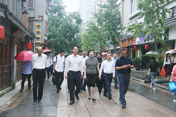 当日,麻胜聪、管秀云一行实地考察大沙堤建设情况、忠义街业态布局。在大沙堤,麻胜聪一边走一边看,了解建设进展、街巷格局,不时询问有关具体问题。在随后召开的座谈会上,市政协主席管秀云汇报了玉海历史文化街区保护建设指挥部工作进展、存在问题、下步安排等情况汇报,协调解决具体问题。