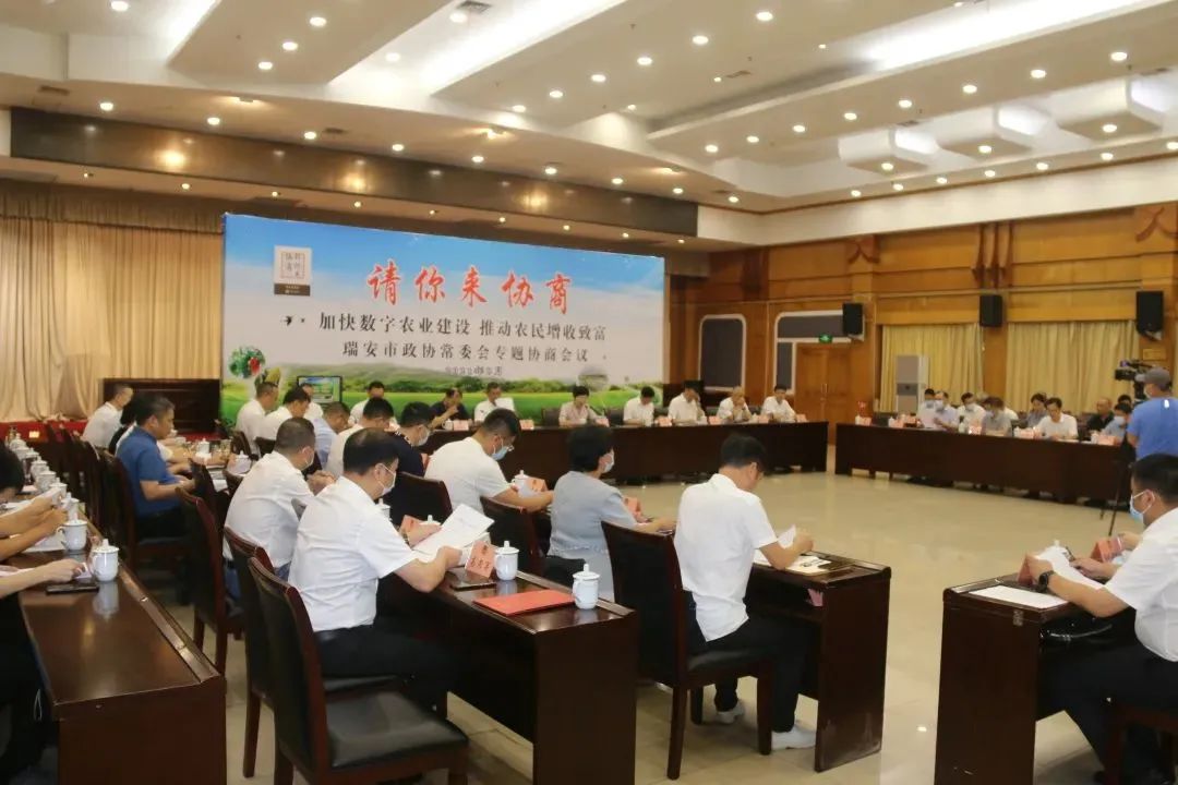 8月6日,瑞安市政协十三届二十六次常委会会议在市政大院多功能厅召开,市政府与市政协就《加快数字农业建设 推动农民增收致富》议题开展专题协商。市领导管秀云、池万松、陈良明、倪希杰、陈荣臻、钱定荣、吴功宜、黄陈跃和相关部门负责人参加协商活动。