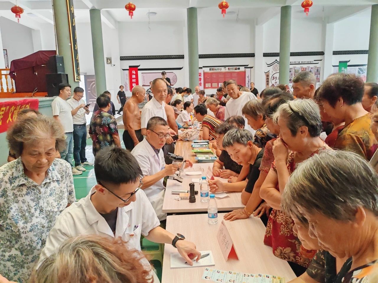 活动现场,委员们为村民提供涵盖内科、外科、骨伤科、眼科等诊疗服务,结合患者病史和现场就诊情况,细致地向村民答疑解惑和提出健康指导方案。此外,现场还发放疾病预防宣传资料,进一步普及卫生健康知识,赢得了村民们的一致好评,前来就诊的群众络绎不绝,累计服务群众百余人。